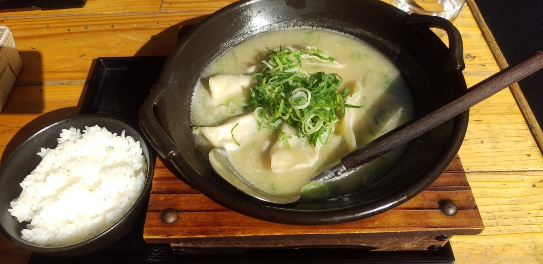 濃いめのとんこつラーメンに餃子入れた感じです。