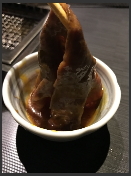 動画で見た焼きスキと、食べたかった和牛の小腸(シロコロホルモンみたいなの)を注文!