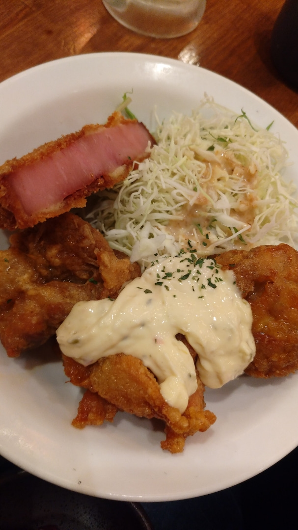 ぶ厚いハムカツとチキン南蛮定食(780円)