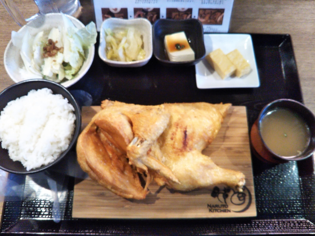 今回の目的は若鶏半身揚げ定食。(税抜き1200円)