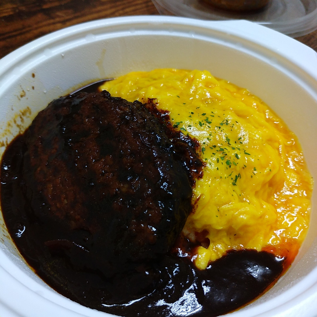 写真だとハヤシソースが黒すぎてハンバーグがあるのかないのかよくわからないですね