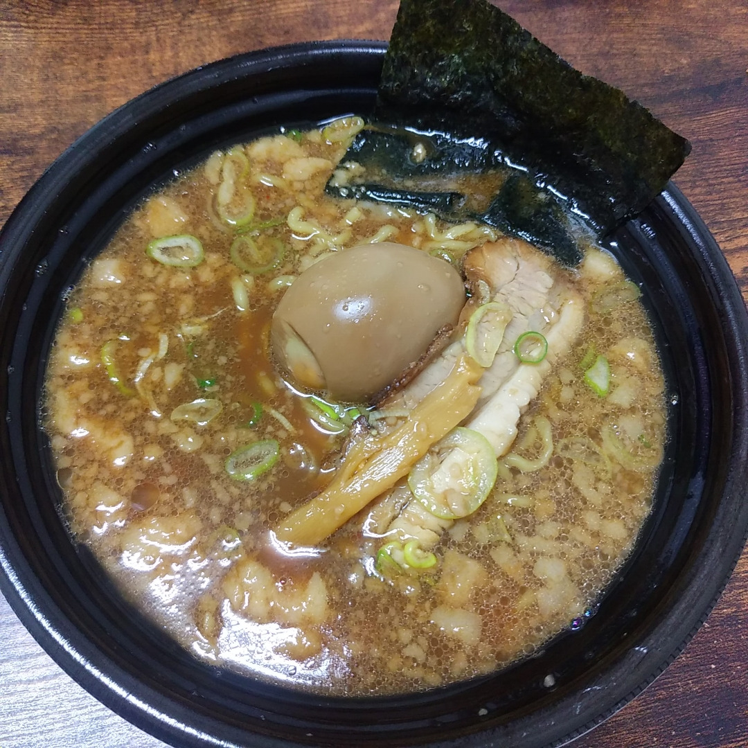 濃いめの醤油とんこつ味スープに中細麺がナイスに絡みます。